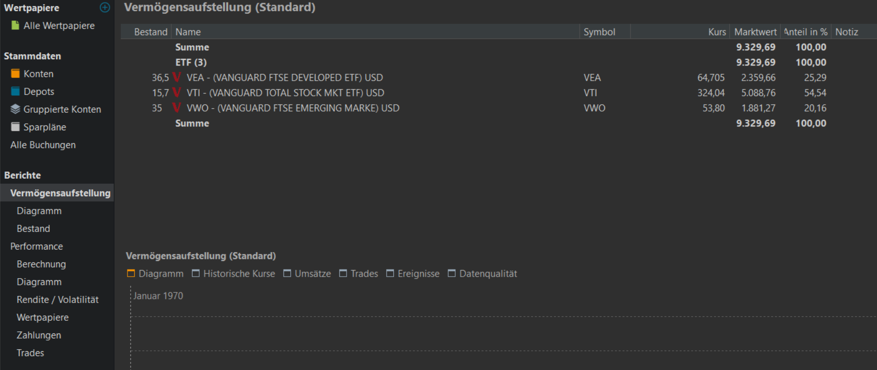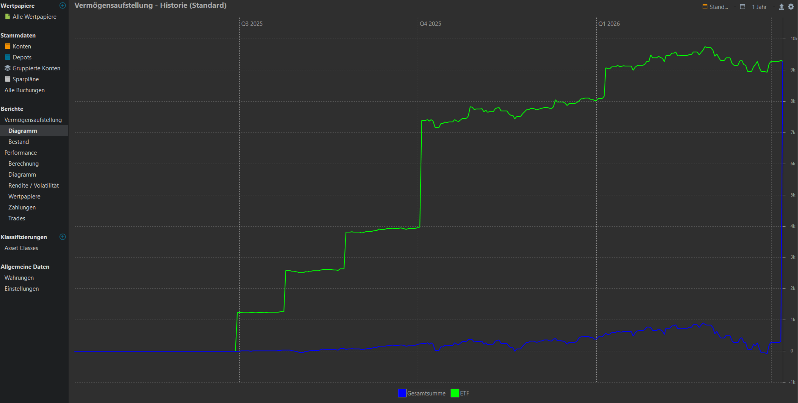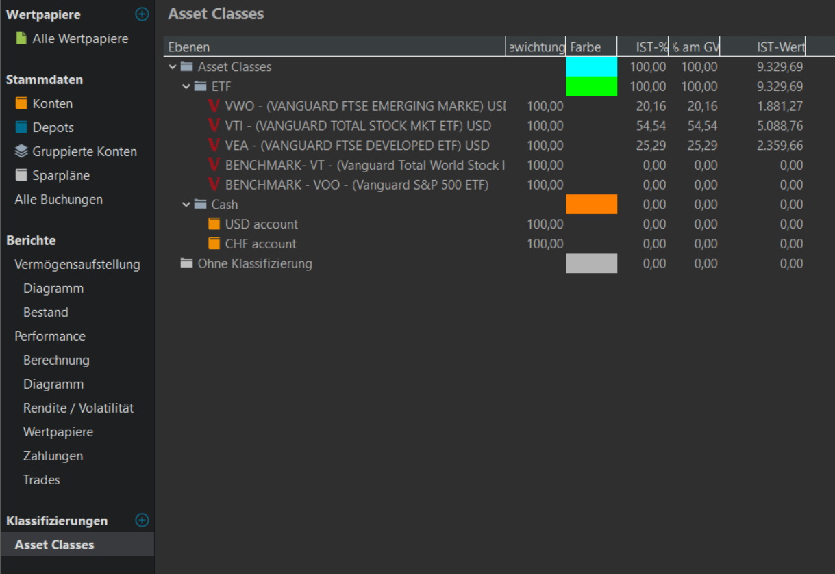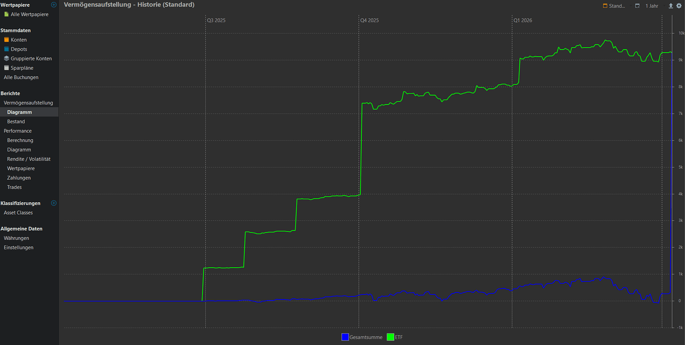 Ich bin ziemlich neu bei Portfolio Performance und habe für mich selber alle Vermögenswerte eingetragen. (ETF, Crypto, Dritte Säule)