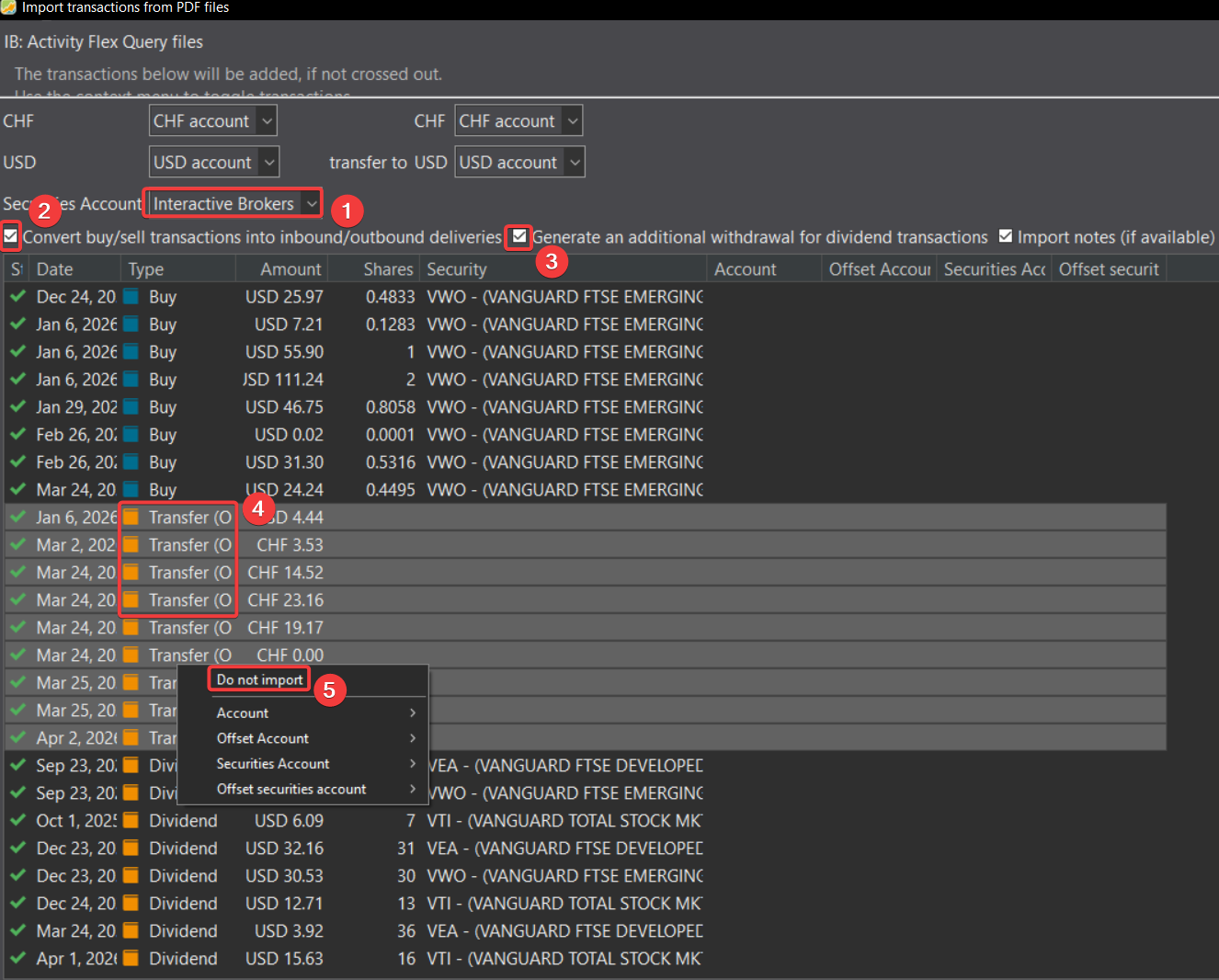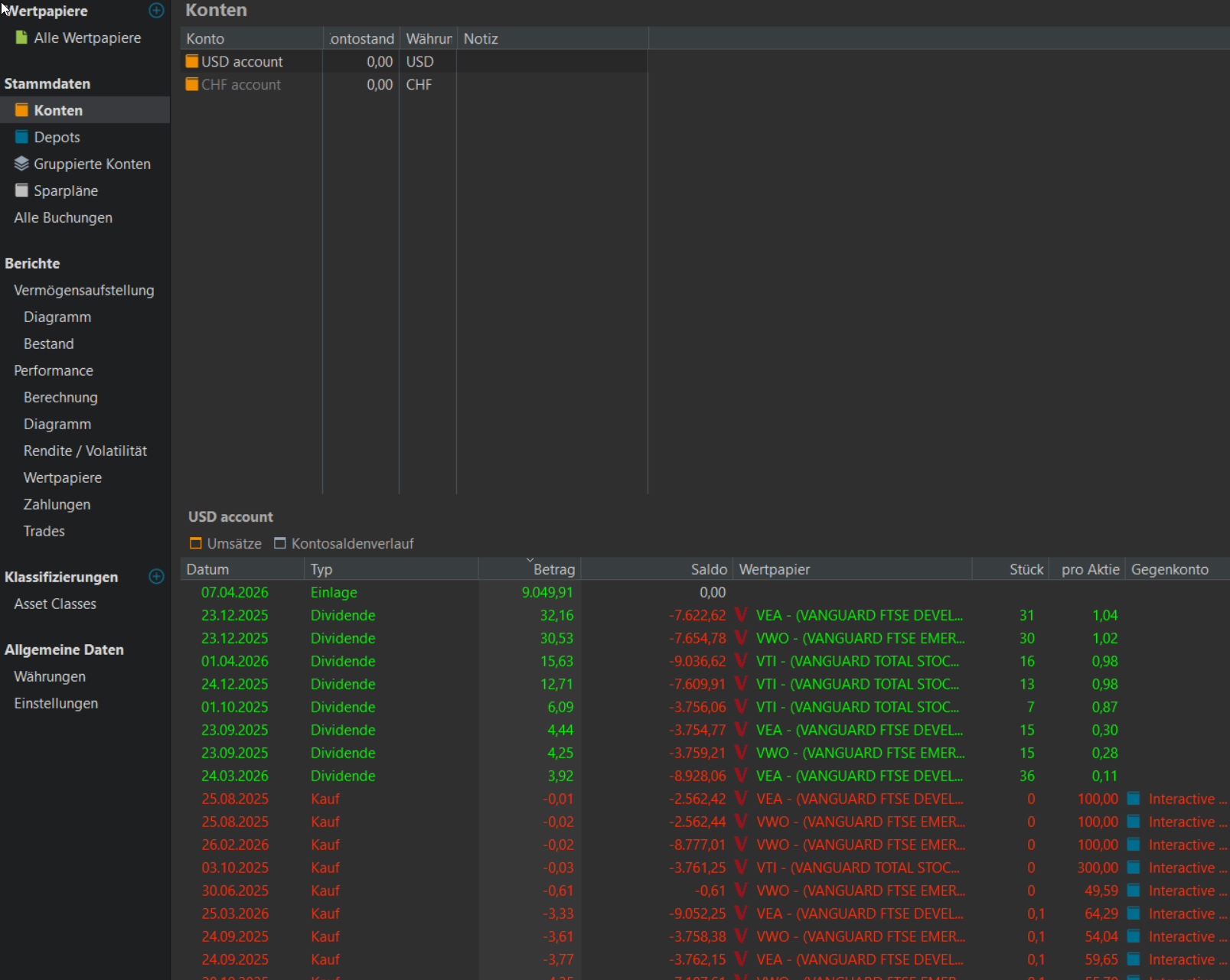 Ich habe alle Punkte kontrolliert und alle alten Transaktionen, Wertpapiere etc. gelöscht und beim USD Konto den Minusbetrag mit einer “theoretischen“ Einzahlung auf 0.00 geändert.