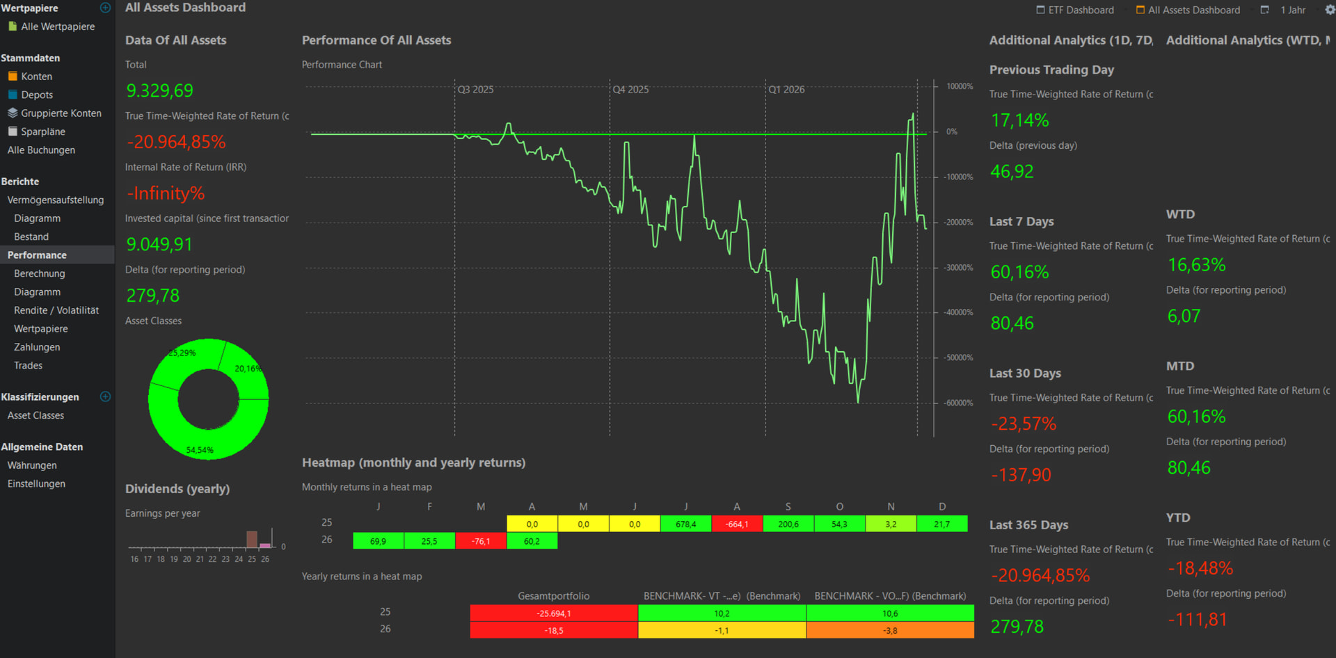 Die TTWROR vom “ETF” Dashboard stimmt, aber vom “alle Vermögenswerte“ Dashboard ist es komplett falsch z.B -20’971.92% für die letzten 365 Tage.