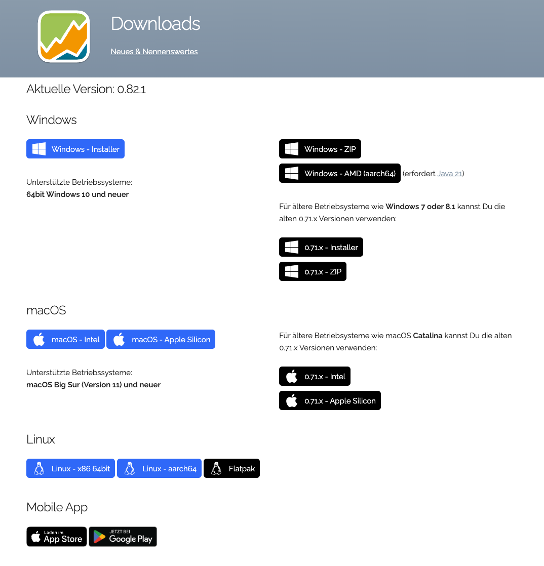 Der Download von der Startseite, verweist auf die jeweils aktuelleste Version.