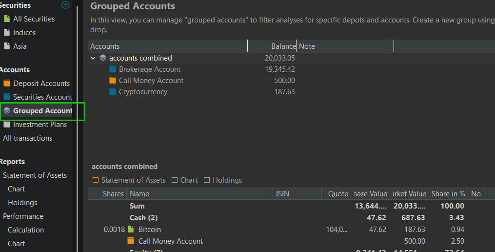 I would like to know if, having two different portfolios, there are any options that allow you to have an overview of both portfolios. That is, you keep both portfolios, but when you want to merge them, you can have comprehensive information on both investments in a single view.