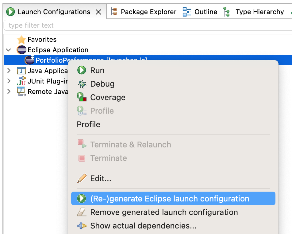 Alternativ kannst Du mal probieren, die Launch Configurtion aus dem Product file zu generieren. Das hat bisher auch meist funktioniert, allerdings sind die generierten Launch Configurations Platform-abhängig und kann man nicht einchecken.