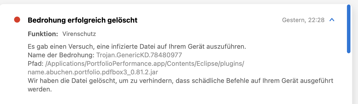 Seit heute zeigt mein Virenprogramm einen Fund in einer Datei von Portfolioperformance an.