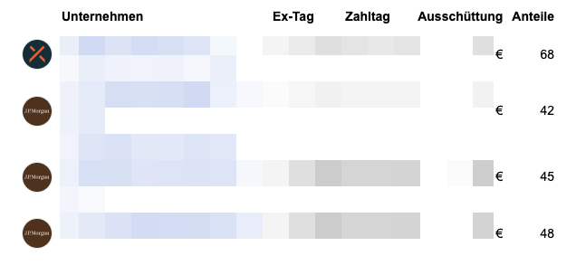 Unter “Ereignisse” zu einem Wertpapier stehen ja auch die bekannten, künftigen Dividendenzahlungen.
